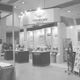 社名変更したばかりの会社様のため、ロゴの色を全体の基調とし目立つ様工夫した。真ん中に円柱を設け、対面接客数を確保できる様工夫した。
